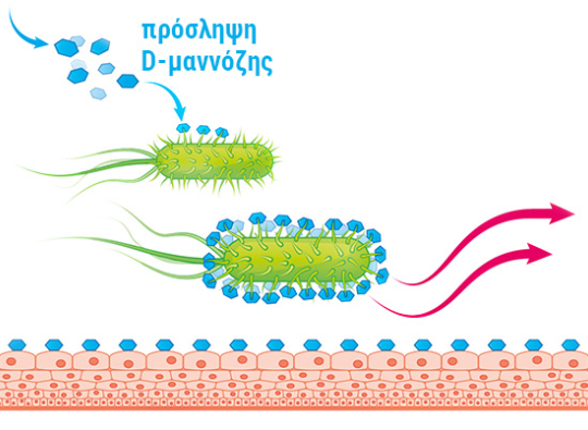 ουρολοίμωξης που οφείλεται σε βακτήρια E. coli. Για την πρόληψη συνιστάται η καθημερινή λήψη D-μαννόζης, ώστε τα